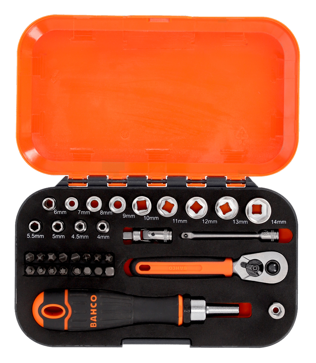 Bahco S34MC8H 1/4" Square Drive Socket & Bit Set with Metric Hex Profile - 34 Pcs