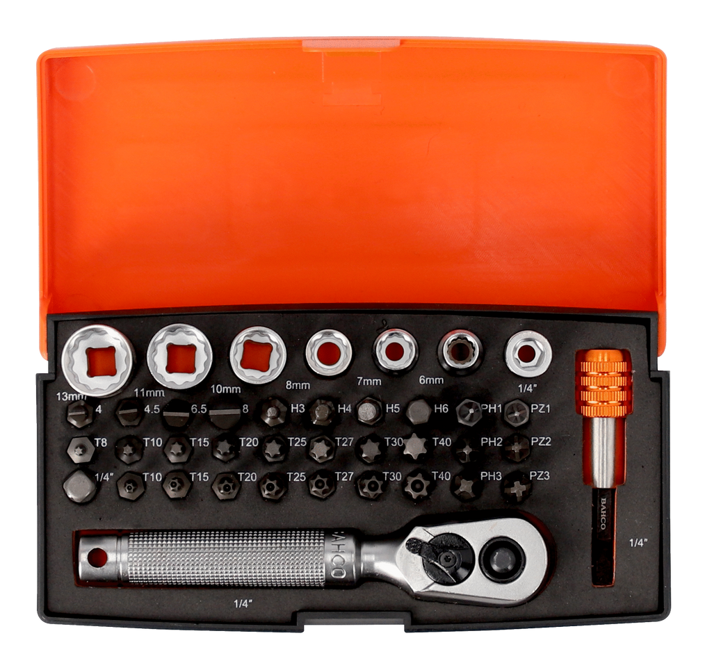 Bahco S39MH 1/4" Square Drive Socket Set with Metric Bi-hex Profile & Screwdriver Bits/Bit Holder - 39 Pcs