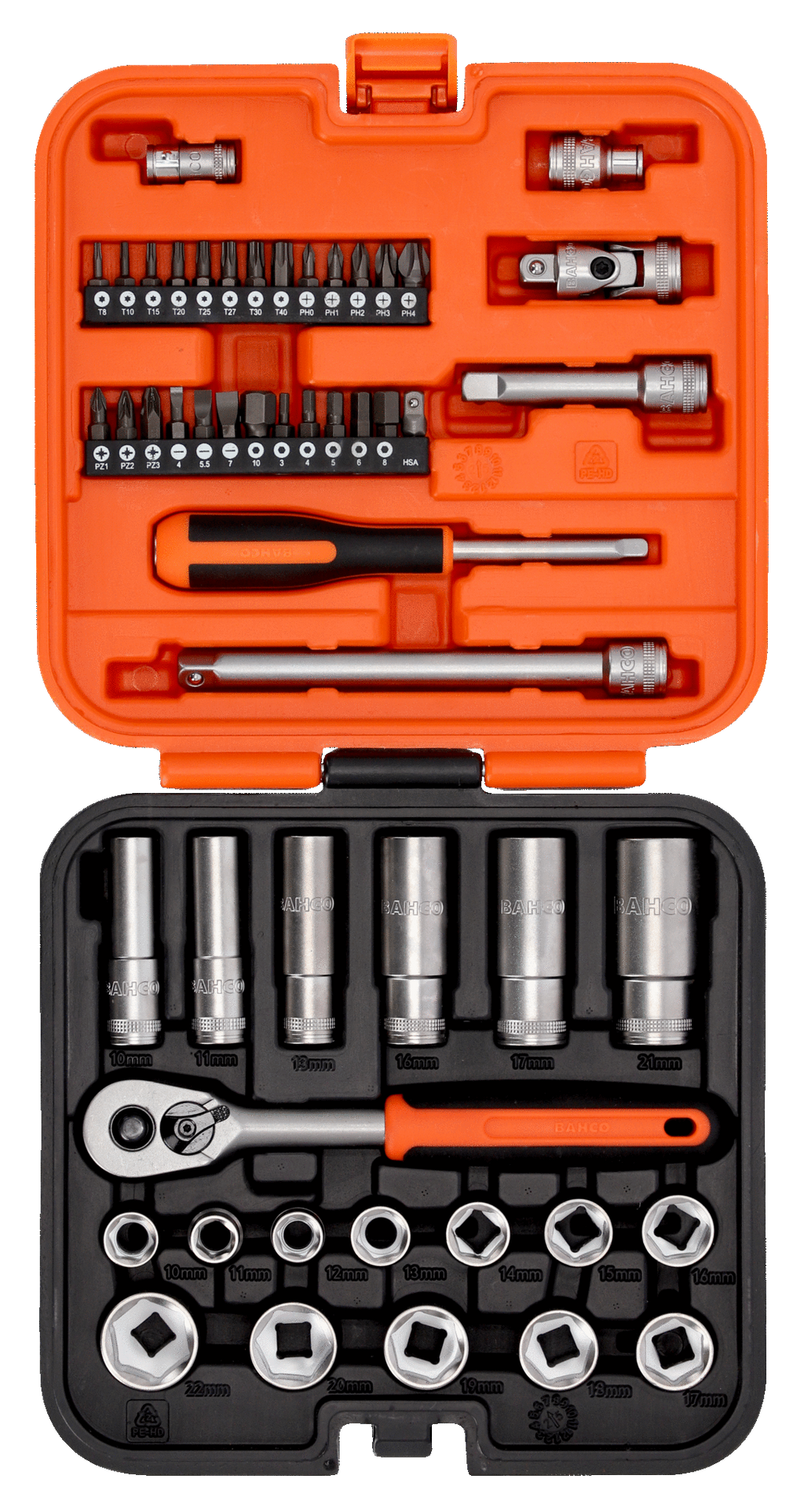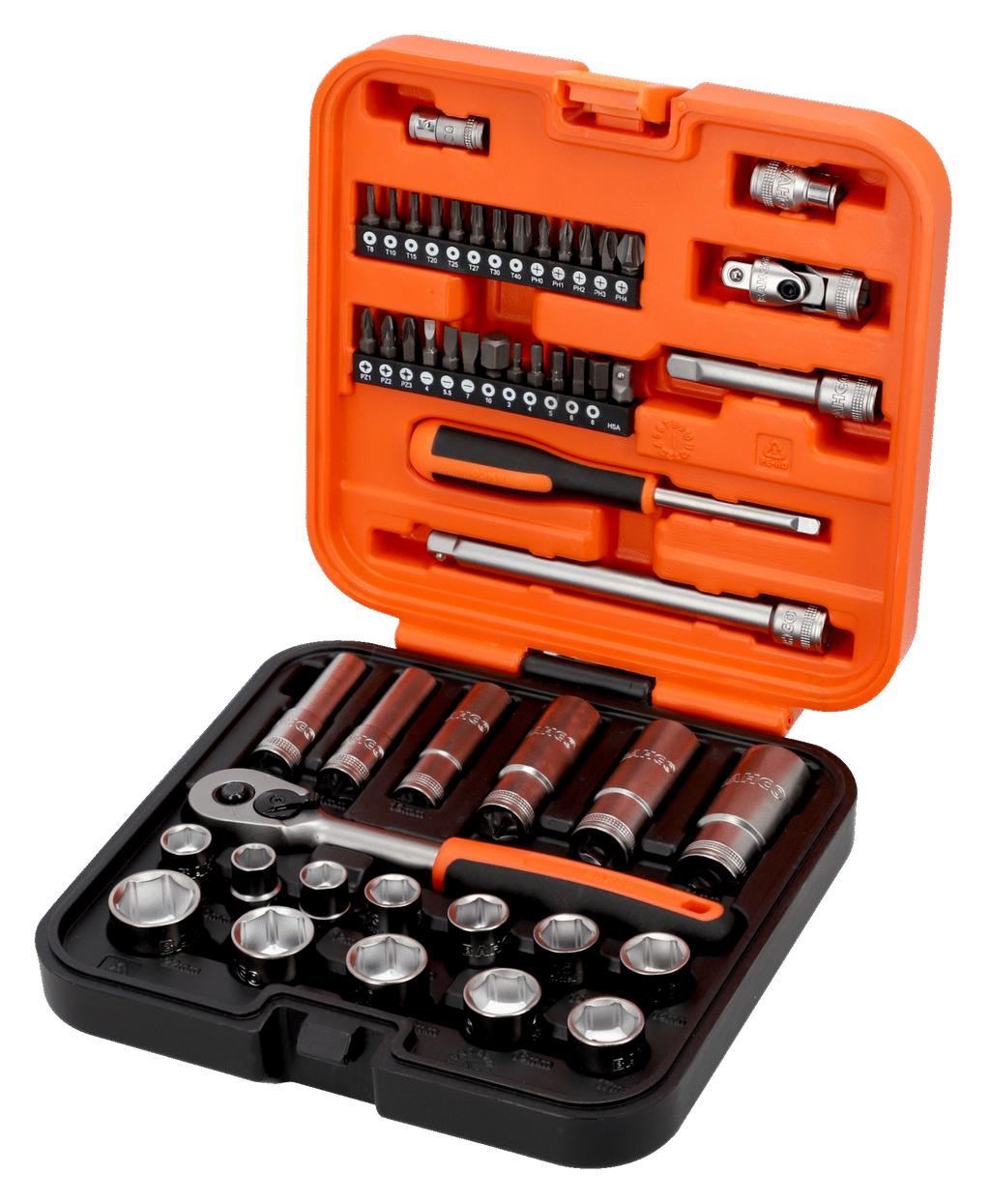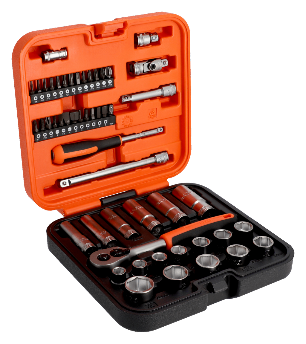 Bahco S51MC3H 3/8" Square Drive Standard & Deep Socket Set with Metric Hex Profile & 1/4" Bits - 51 Pcs