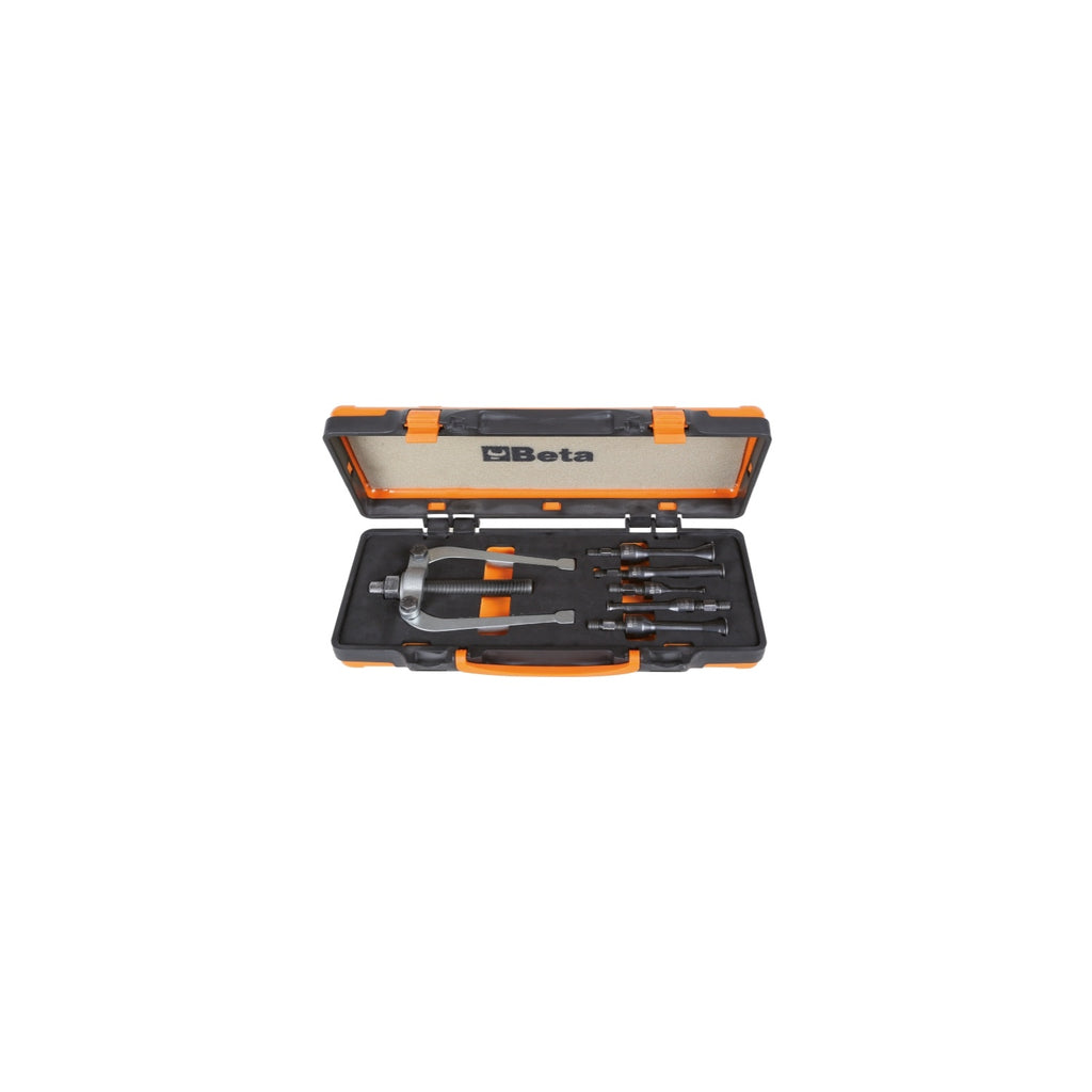 Introducing the Beta Tools 1545/C5M Puller Set, a versatile and essential tool for professionals in the automotive and mechanical industries. This robust set includes the puller 1542 and five extractors 1544, designed for efficient interior expansion pulling tasks. Engineered by Beta Tools, a renowned name in the hand tool industry, this set promises durability and precision, making it an indispensable addition to any tradesperson's toolkit. Its compact cassette size of 265x180x45 mm and a lightweight design of 2.4 kg ensure easy portability and storage, allowing you to tackle challenging tasks with ease and confidence.