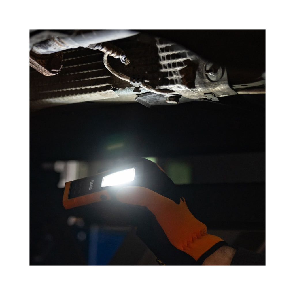 The Beta Tools 1838COMPACT Rechargeable Compact LED Lamp is an essential tool for professionals needing reliable lighting in challenging environments. This versatile lamp, part of the renowned Beta Tools range, offers dual light emission with both main and spot lighting options, making it perfect for mechanics, electricians, and builders. Its compact design, coupled with a rechargeable Li-Ion battery, ensures that you have a powerful light source that is both portable and efficient. With a robust, shockproof rubber body and an IP65 rating, this lamp is designed to withstand the rigours of daily use on-site, providing durability and peace of mind.