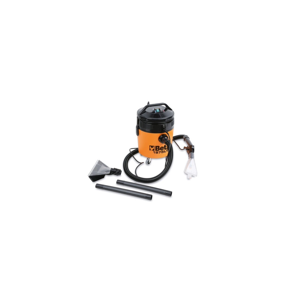 Introducing the Beta Tools 1875LT-INJ/EXT Carpet/Upholstery Cleaner, a powerful solution designed for professional tradespeople seeking effective cleaning of textile surfaces. This versatile cleaner is perfect for vehicle repair and maintenance, particularly for car seats and interiors. It operates by dispensing pressure-sprayed detergent, which is then efficiently extracted along with dirt, leaving surfaces nearly dry. With a robust design and high-performance capabilities, the Beta 1875LT is an essential tool for achieving immaculate results in demanding environments.