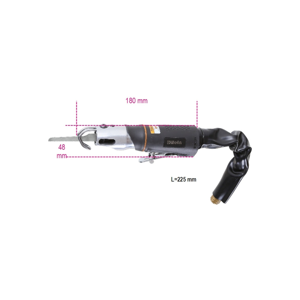 The Beta Tools 1942A-AIR SAW is a powerful and handy pneumatic tool designed specifically for professional tradespeople working with materials such as bodies, exhaust pipes, silencers, aluminium, and plastic. This versatile air saw is part of Beta Tools' renowned range of special tools, offering exceptional performance and reliability. With its robust construction and ergonomic design, the 1942A-AIR SAW ensures precise cutting and ease of use in demanding environments. Complete with a rubber handle, PVC exhaust pipe, and air-feeding hose, this tool is engineered for efficiency and durability on the job site.