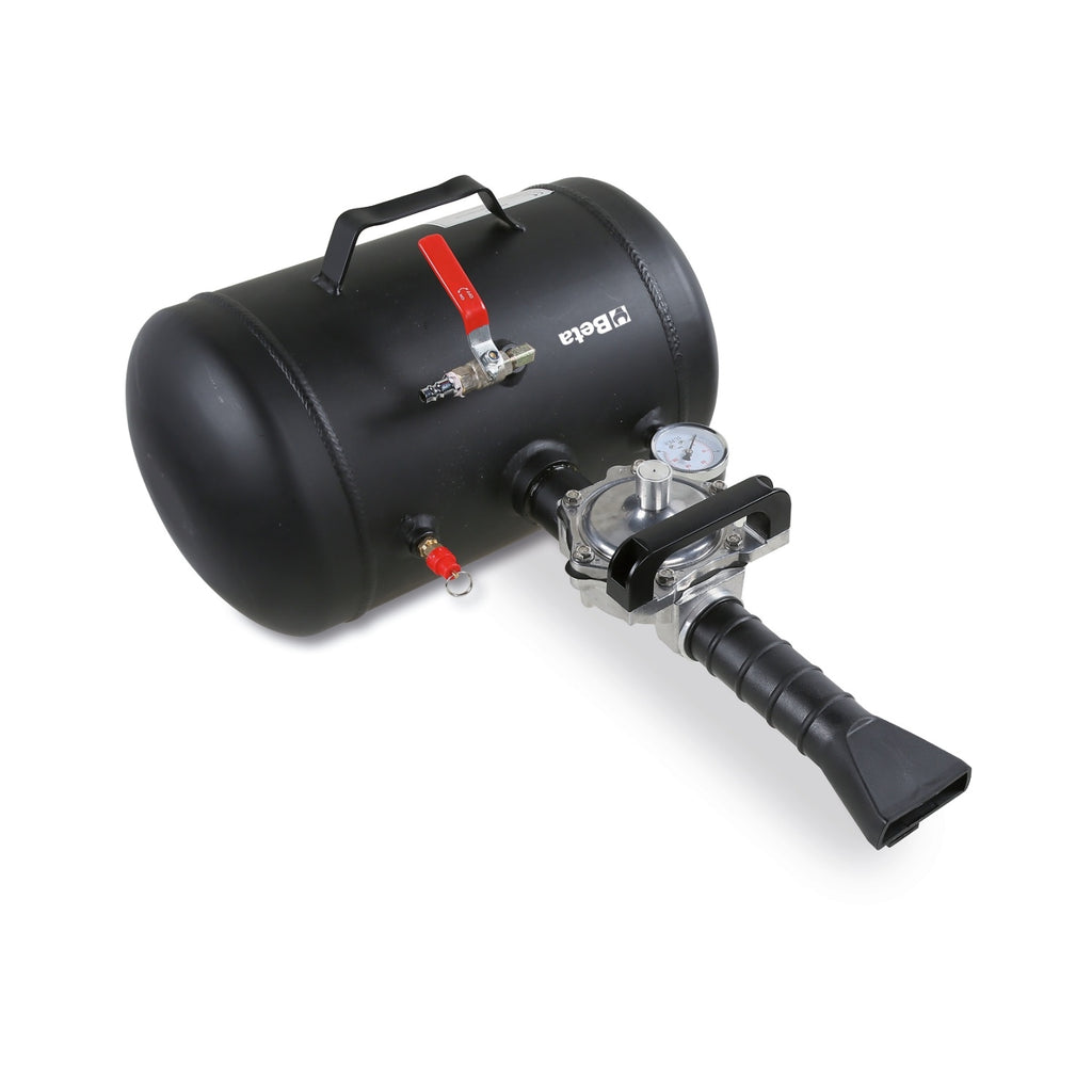 The Beta Tools 1950BZK/T Truck Tyre Bead Seater is an essential tool for professionals in the vehicle repair industry, specifically designed for trucks, buses, agricultural vehicles, and earth-moving machinery. This robust tool ensures efficient and safe tyre bead seating, making it a valuable asset for tyre specialists. Featuring a secondary handle with push-button operation, it allows for secure handling during use. With its substantial tank capacity and high operating pressure, the Beta Tools Tyre Bead Seater is engineered for reliability and performance, ensuring you achieve optimal results in demanding environments.
