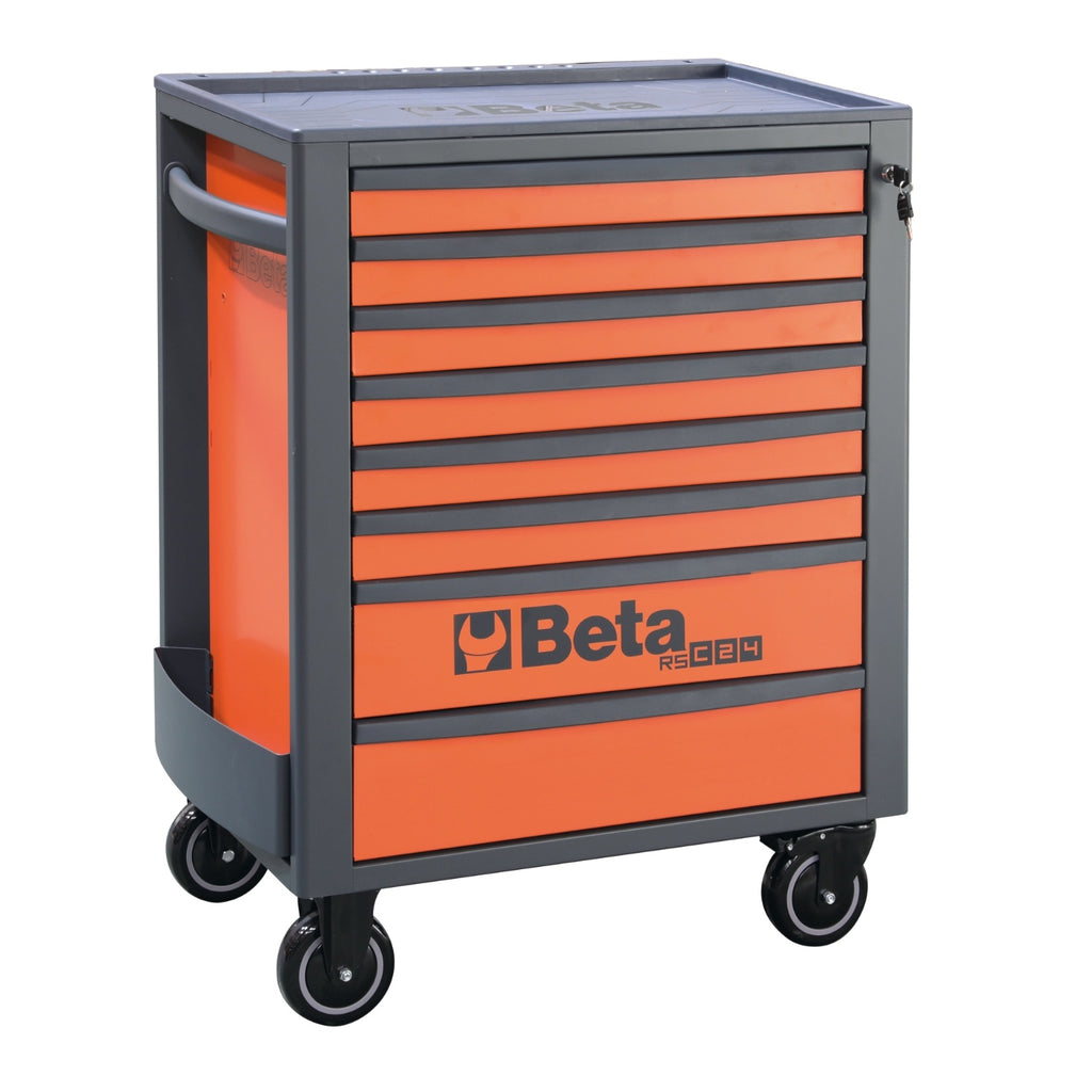 The Beta Tools RSC24/8 Mobile Roller Cab is a robust and versatile storage solution designed for professional tradespeople. This mobile roller cab features a reinforced worktop and a spacious design, making it ideal for organising and transporting tools efficiently. With its eight fully removable drawers, each equipped with smooth ball bearing slides, the RSC24/8 offers ample storage space for various tools and accessories. The cab's static load capacity of 800 kg ensures it can handle substantial weight, while the integrated bottle holder and optional accessories enhance its functionality. Whether you're a mechanic, electrician, or builder, this roller cab is engineered to meet the demands of professional environments.