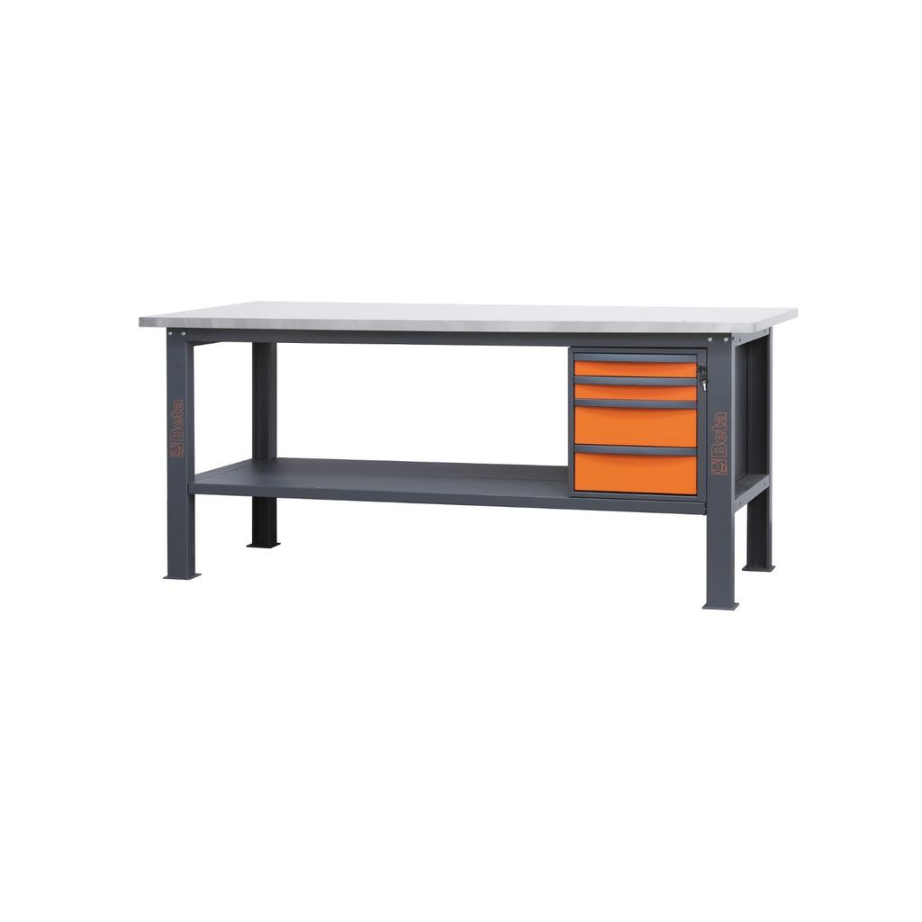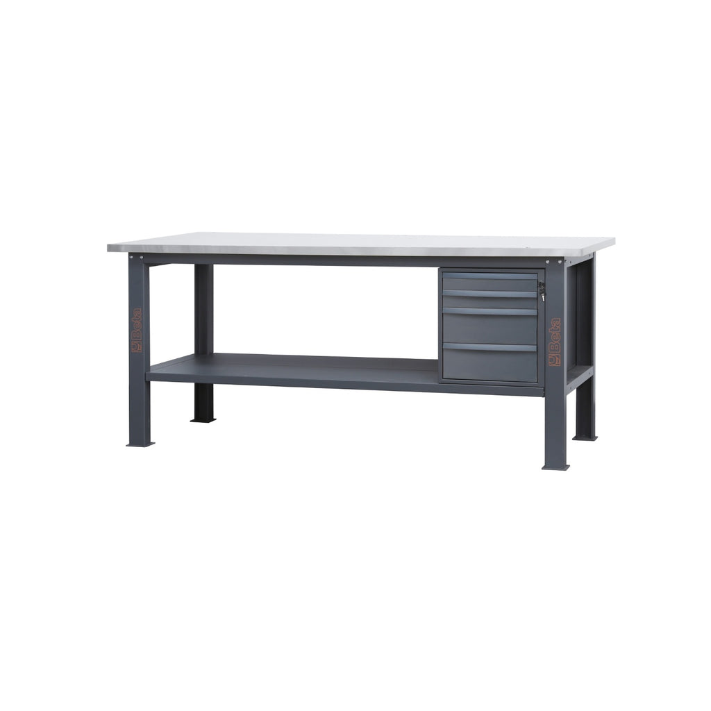 - Enhance workspace efficiency with a large 2,100x750 mm stainless steel coated MDF worktop.