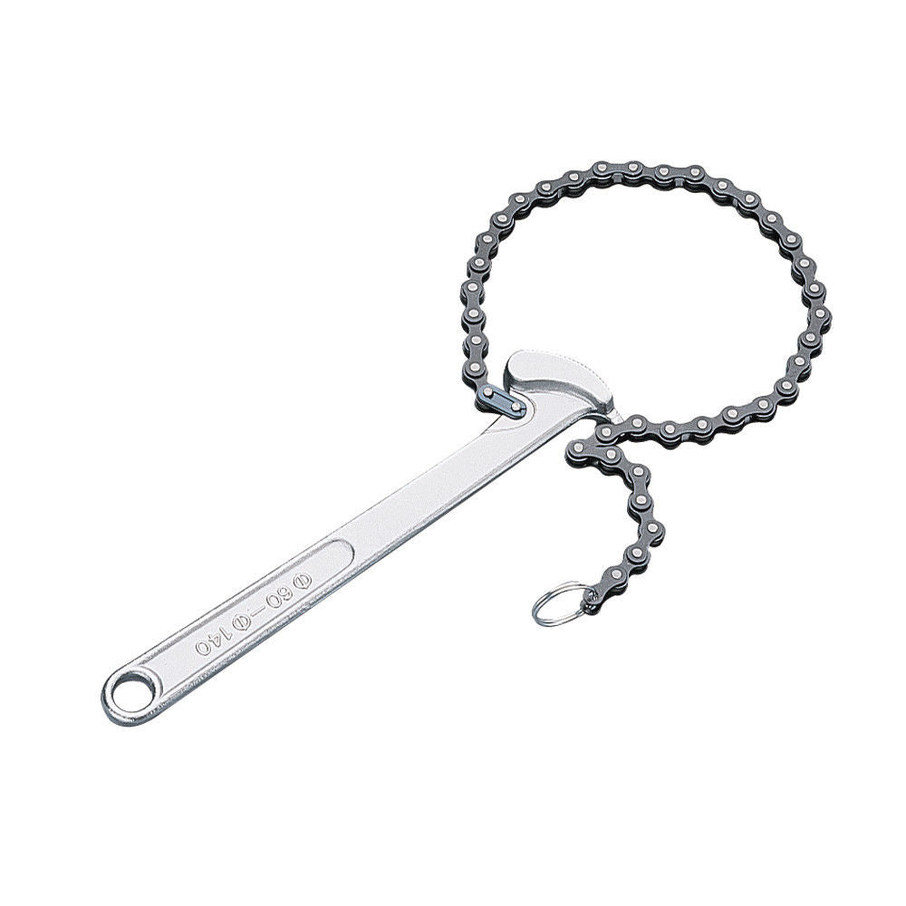 Stiff and stubborn oil filters respond to the power of this wrench. With its long drop forged steel handle and strong linked chain, the job of removal is made so much easier.