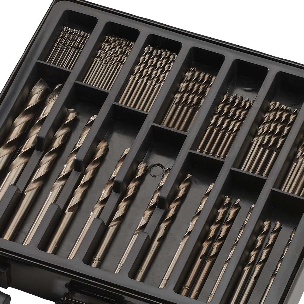 The Clarke CHT931 99-Piece Cobalt Drill Set is manufactured from M35 steel for increased speed and effective cutting, even at high temperatures. Each drill bit is finished with a 135¡ split point, ideal for the cutting of sheet materials, reducing the chance of the bit slipping during use, the 5% cobalt content also makes the drills better at drilling in harder materials. We strongly advise that when drilling in steel and stainless steel, that you use a cutting fluid and center punch when sta