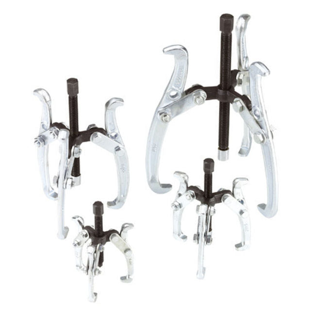 This set of 4 multi-pivoted triple legged extractors are made from heavy duty forged steel. They are designed to remove gear wheels of various sizes by either internal or external pulling.