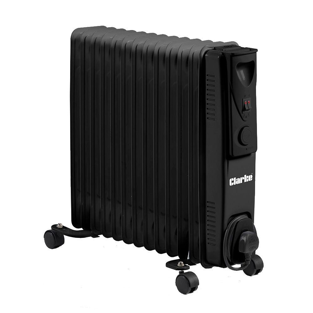 A 13 finned oil radiator suitable for office, home or workshop use. Features include adjustable thermostat, 3 heat and 3 power settings up to 2. 5kW. Includes 4 castors for easy mobility.