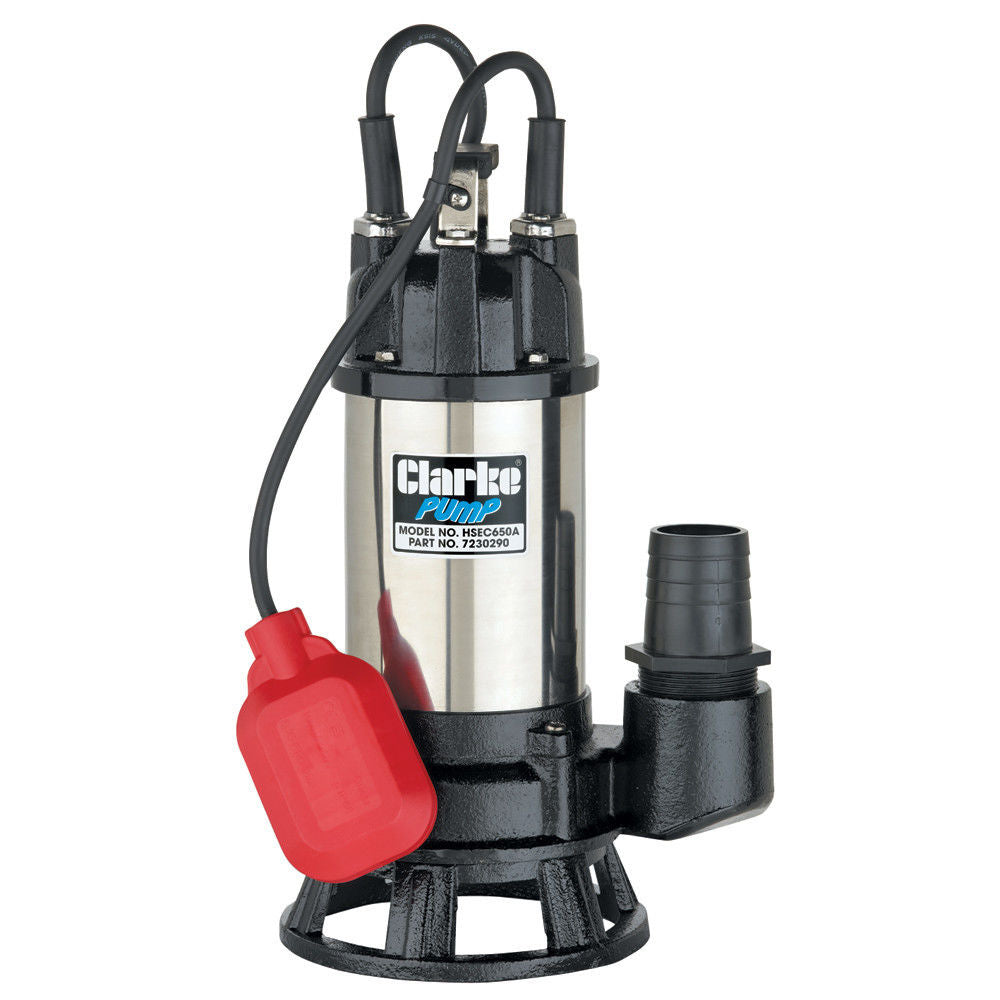 Clarke's truly heavy duty, industrial quality submersible dirty water cutter pump benefits from a corrosion resistant stainless steel drive shaft and body. It also has a sharpened, tungsten carbide cutter plate to chop and reduce any water borne sewage or vegetation. This enables the HSEC650A pump to happily pump dirty water, even sewage water, all day long and for cost-conscious, economic operation itÕs also switched on and off automatically, thanks to the inclusion of a simple but effectiv