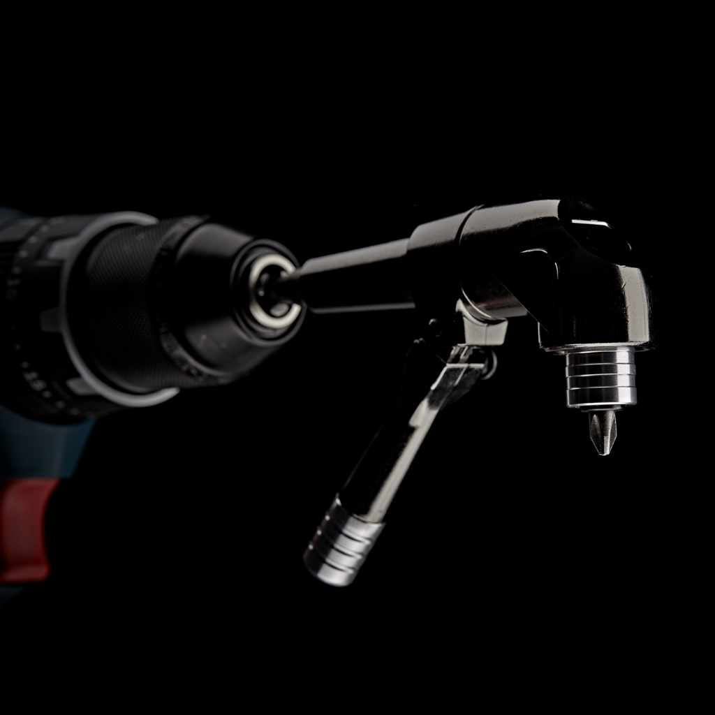 A right angle 25mm driver and magnetic bit holder to help loosen and tighten screws or fixings in the most inaccessible places, helping you achieve the seemingly impossible.