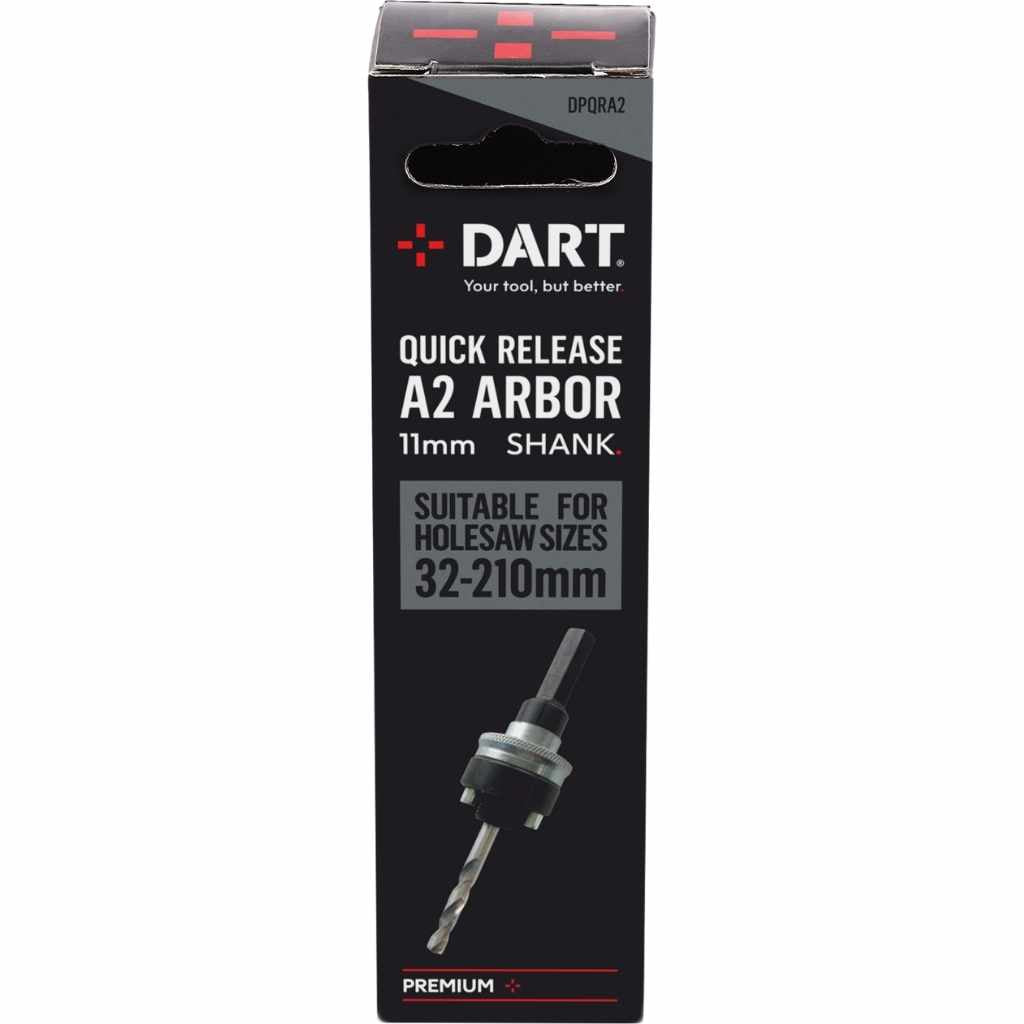 This arbor allows the user to quickly release the holesaw locking pins to facilitate fast holesaw change. The arbor fits DART holesaws and will also fit most other holesaws available.