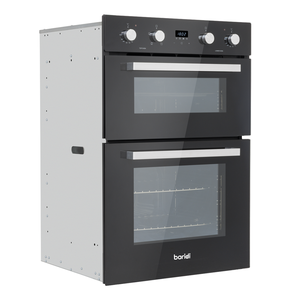 88L Capacity (31L Top Cavity / 57L Lower Cavity) and consistent temperatures that this oven provides will help you cook the perfect meal every time. The top cavity features four cooking functions and is perfect conventional oven and grill use while the bottom cavity features two cooking functions including defrost mode. Black glass finish adds a modern touch to your kitchen. Designed to complement Baridi Cooker hoods and hobs as well as our range of wine coolers and drinks fridges. Includes 2 x chrome grill racks and one baking tray as standard.