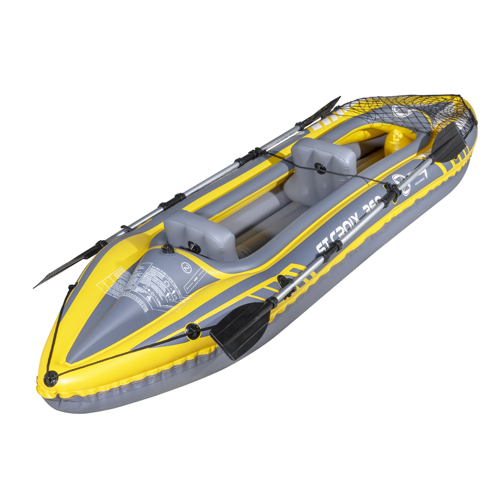 - Inflatable 2-Person Kayak/Canoe Set with Pump, Carry Bag & 2 Oars - Blue/Yellow/White