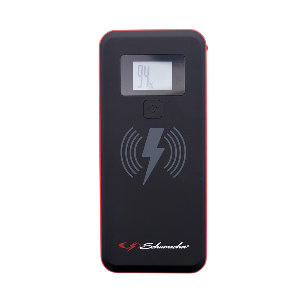 These compact Schumacher lithium jump starters and power bank are designed for on-the-go charging. Their advanced 16V 4-cell lithium technology provides superior starting performance for jump-starting 12V dead batteries. The Pre-Boost technology pre-charges deeply discharged batteries, and the Pre-heat mode warms the battery for optimal starting in low temperatures. The built-in flashlight offers flashing and SOS modes for emergency use. There is an easy to read LCD screen. In addition to jump-starting cars, the units function as a powerful battery pack offering wireless charging for Qi compatible devices and a USB-C output for charging mobile devices. For safety, the units protect against reverse polarity, short circuit, low voltage, high temperature and reverse charging. Includes a smart cable with battery clamps, USB-C charging cable and storage case.