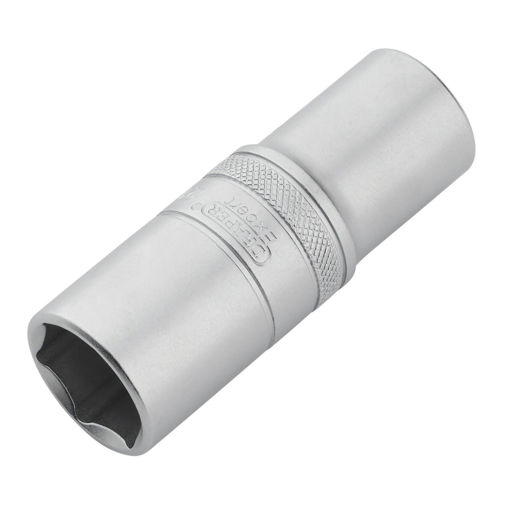 These Draper Expert Hi-TORQ® 6-point deep sockets are made from hardened chrome vanadium steel and have a chrome plated micro-satin finish for corrosion protection. Each socket includes a knurled ring for enhanced grip.