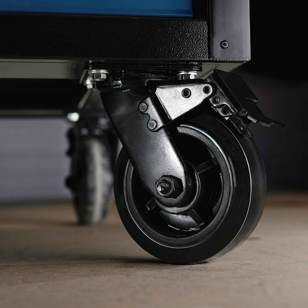 Engineered to resist scratches and wear, the cabinet features ten spacious drawers fitted with smooth soft-close runners and EVA foam lining to protect tools when not in use. Designed for mobility, it includes a sturdy steel side handle and four heavy-duty castor wheels, two of which are fitted with brakes, allowing safe and easy repositioning around the workspace.
