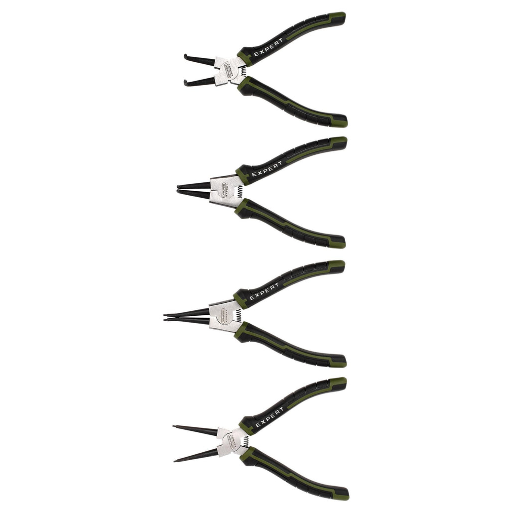 1 x 180mm Straight external circlip pliers 1 x 180mm Bent external circlip pliers 1 x 180mm Straight internal circlip pliers 1 x 180mm Bent internal circlip pliers