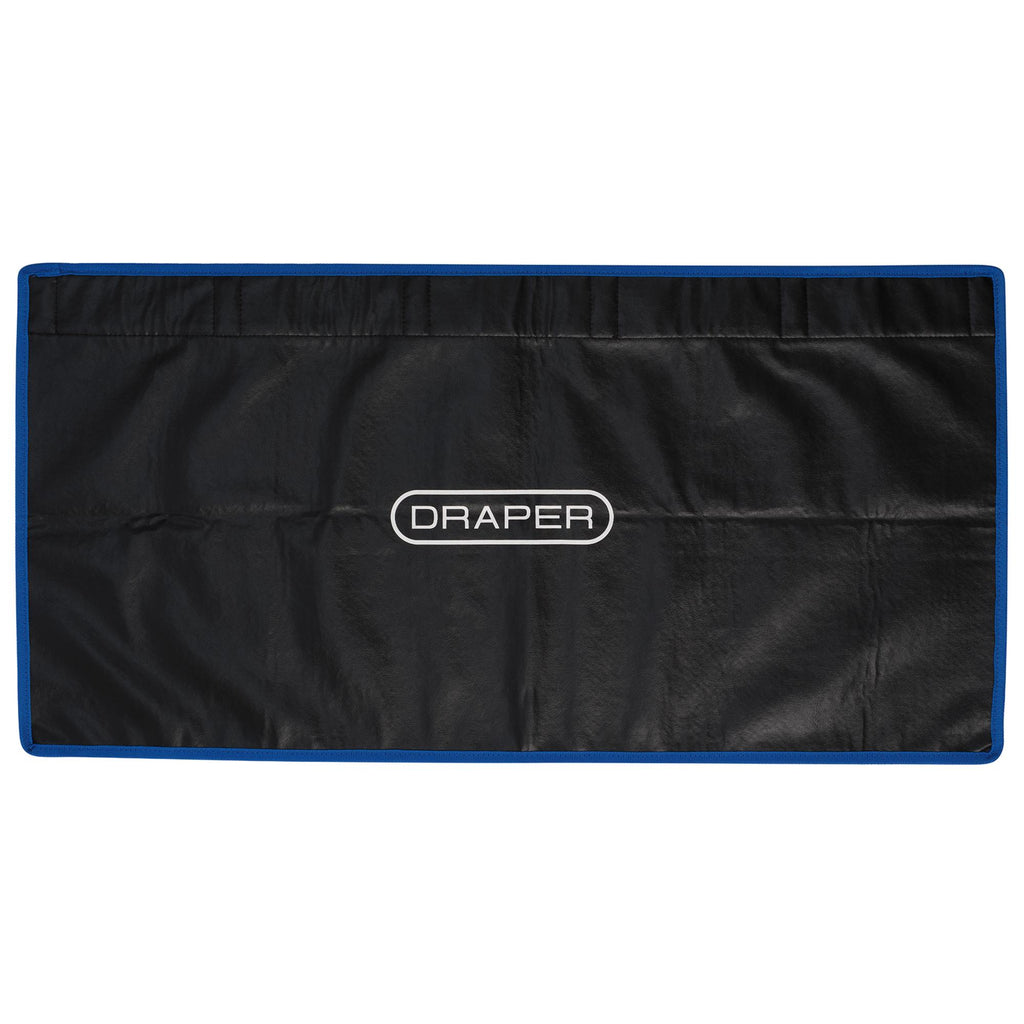This magnetic wing cover is designed to protect vehicle bodywork during servicing and repairs. It is double-sided with a durable vinyl synthetic leather outer surface and a soft, non-scratch inner lining that prevents damage to the paintwork. The integral magnetic strips securely hold the cover in place on the wing or other areas of the bodywork, allowing for quick and easy installation. Measures 800 x 400mm.