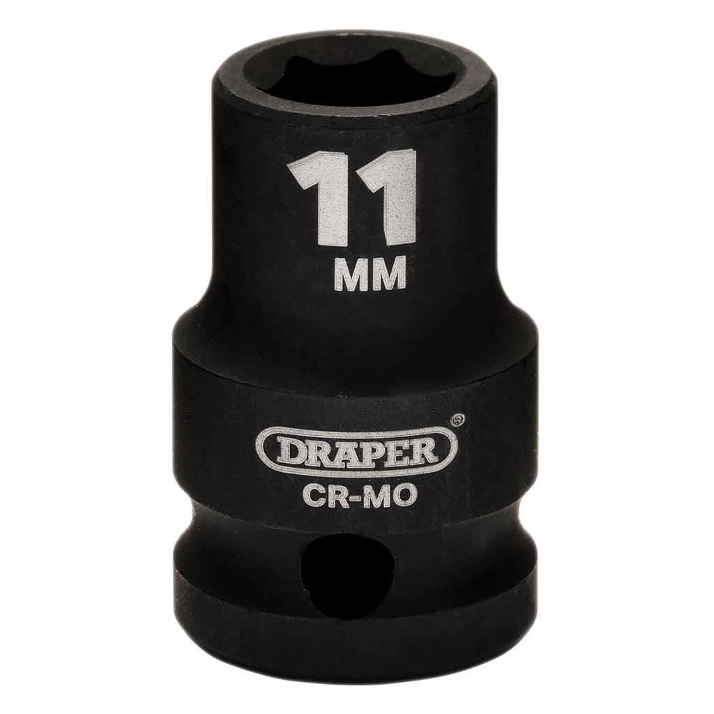 These Draper Hi-TORQ 6-point impact sockets are forged from hardened chrome molybdenum steel. Black phosphate finish for corrosion protection. For use with electric or pneumatic impact wrenches with a 1/2" drive.