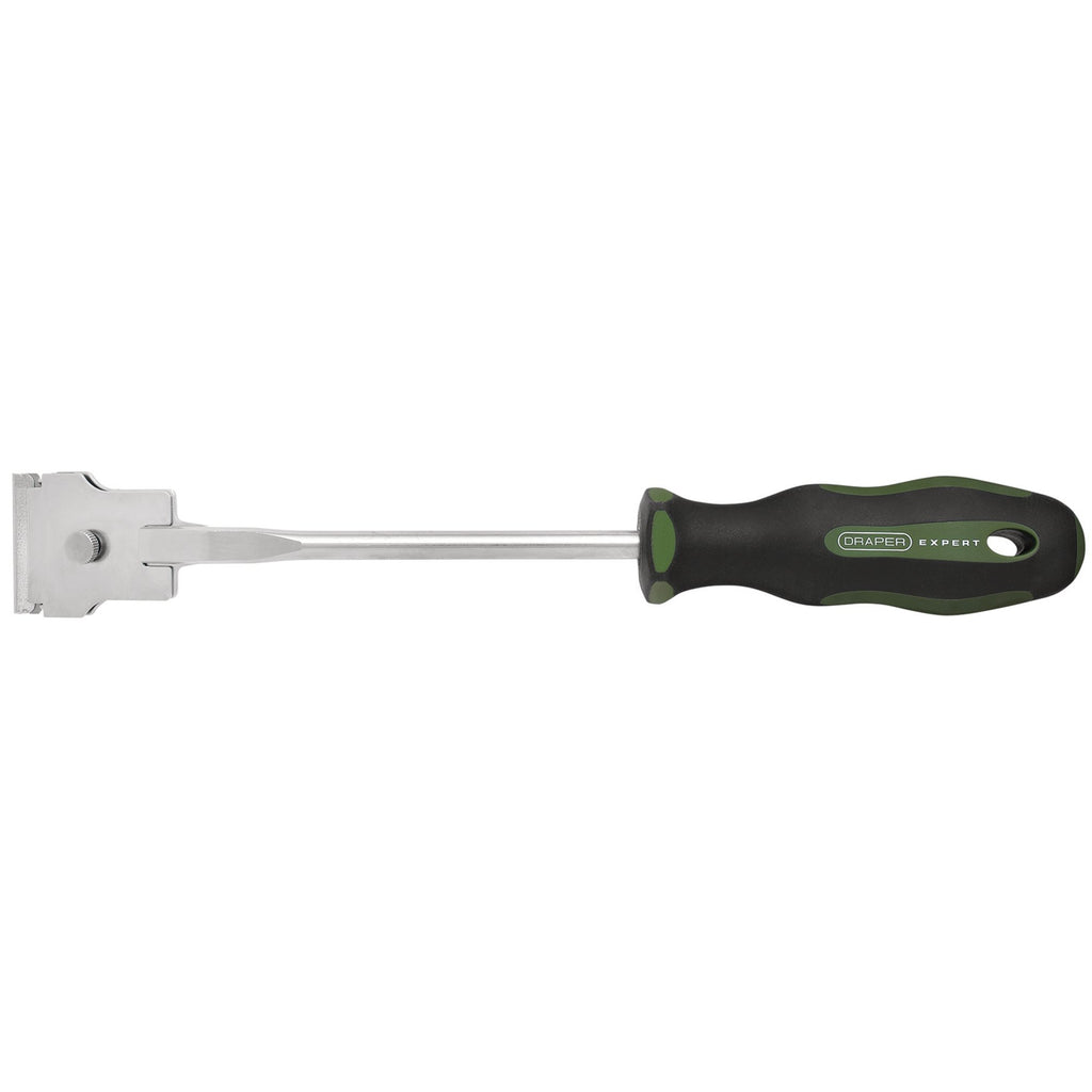 This high-quality window scraper is ideal for removing paint from glass surfaces, scraping gaskets and removing labels, stickers and overspray from car windows. It features a long reach, ergonomic soft grip handle for easy use. The shaft is made from high-quality SVCM steel that is hardened and satin chrome plated for corrosion protection. The scraper has a 40mm blade. There is a hang hole for easy storage.