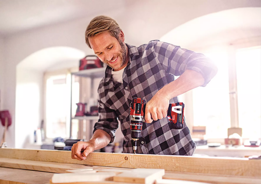 The Einhell tool set consists of the cordless impact drill TP-CD 18/50 Li-i BL and the cordless impact driver TE-CI 18 Li BL – both tools are part of the powerful and flexibly combinable Power X-Change family. In addition, delivery includes two 2.0 Ah Power X-Change batteries, a fast charger and a practical transport bag. Both cordless devices are equipped with a brushless motor, which provides more power and a longer running time. The impact drilling function included with the cordless impact drill TP-CD 18/50 Li-i BL allows universal work, and the 2-speed gearbox is suitable for powerful drilling and screwing. The speed electronics ensure material- and application-appropriate work The ergonomic design and softgrip provide maximum handiness and a firm, secure grip. The LED lighting provides an optimal view of the work area. Screwing in large and long screws, on the other hand, is an effortless task with the cordless impact driver TP-CI 18 Li BL. It has a 1/4" (6.35 mm) hexagon tool socket. The finely adjustable speed control electronics can be individually set. The short, lightweight design saves your strength, and the ergonomic softgrip surfaces offer a firm hold.