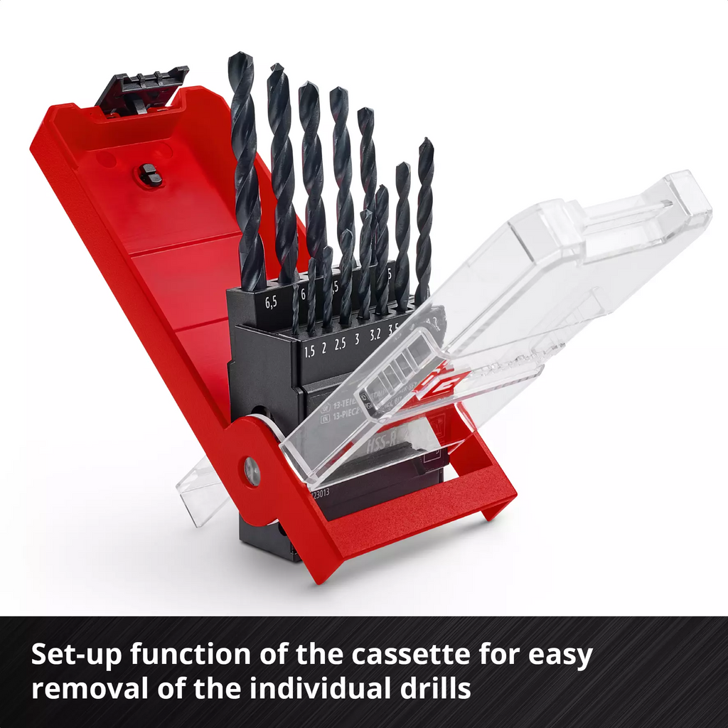 - 13x HSS-R metal drill bits (1.5 - 6.5 mm)