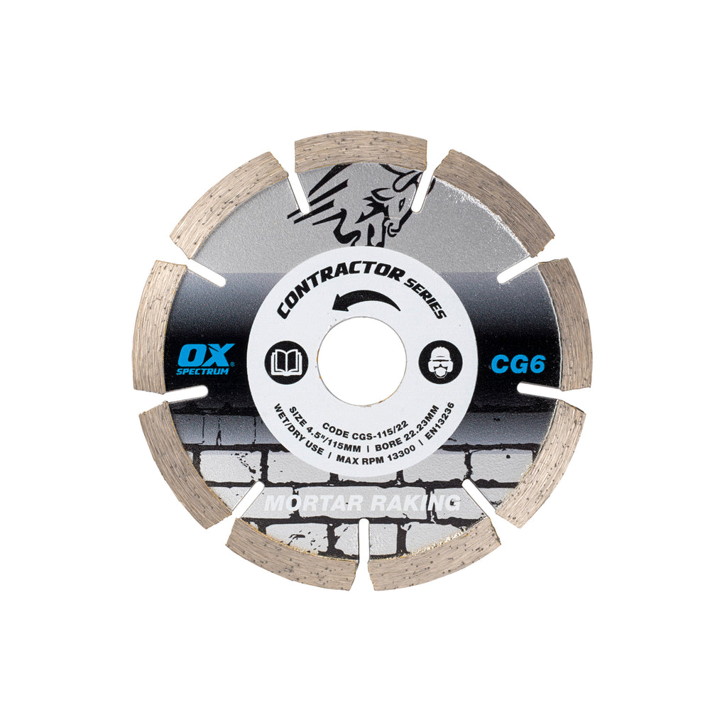 OX Tools OX-CG6-115/22 Contractor Diamond Blade - Mortar Raking - 115/22.23mm