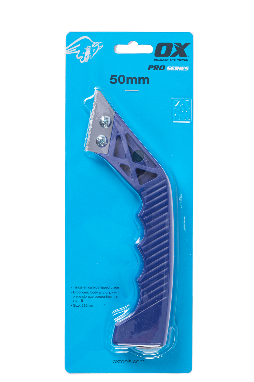 The OX Pro Grout remover comes with a tungsten carbide tipped blade and an ergonomic handle with a built-in blade storage compartment.