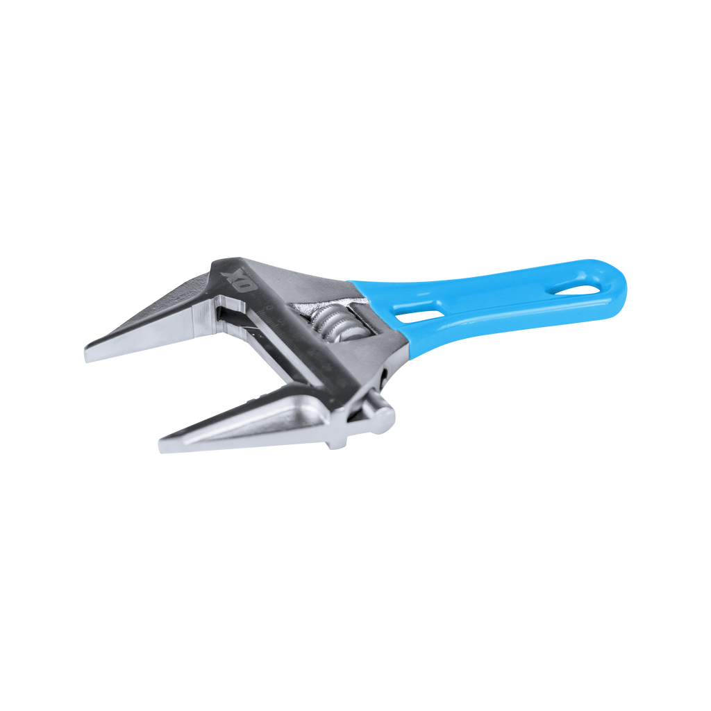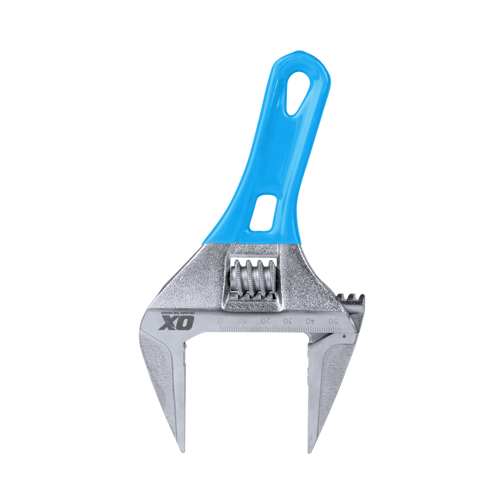 The OX Pro stubby adjustable wrench optimises access in hard to reach spaces while the ultra wide jaw opening offers access to bolt heads ranging from 0-53mm.