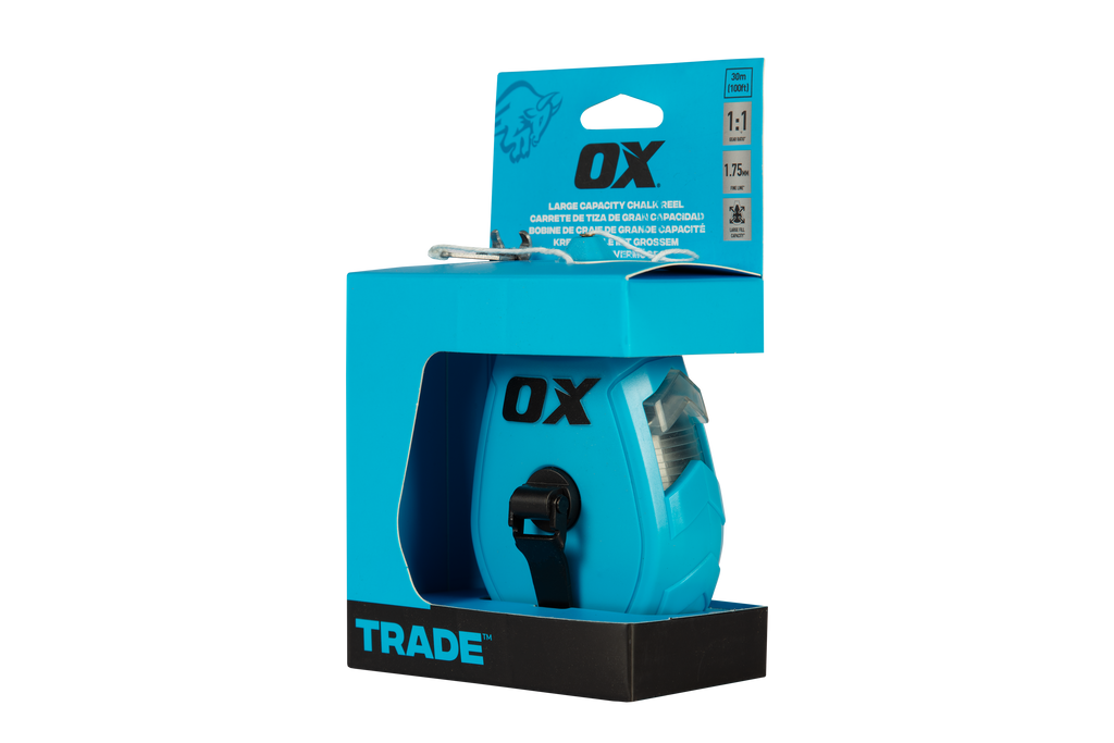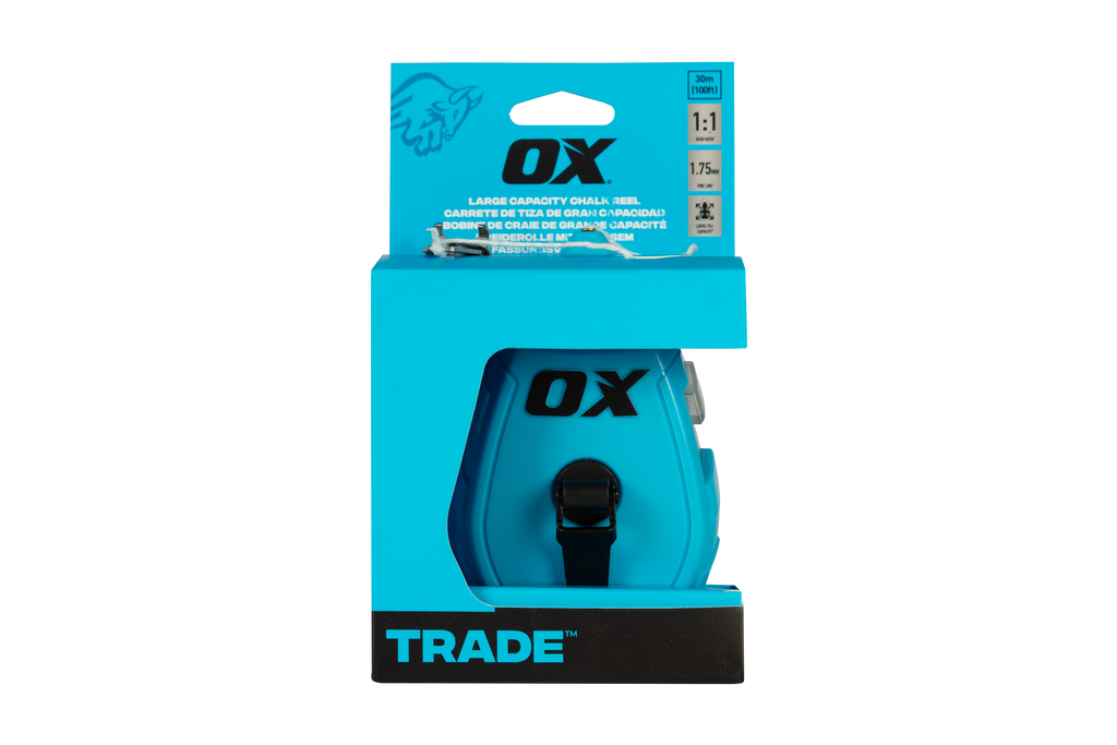 Large Capacity & durable ABS plastic Case​, 30m Extra Bold Line, Cotton line reinforced with nylon​, Integrated hook storage in housing, Pointed Tip for easy corner access, Transparent window for monitoring chalk volumes​