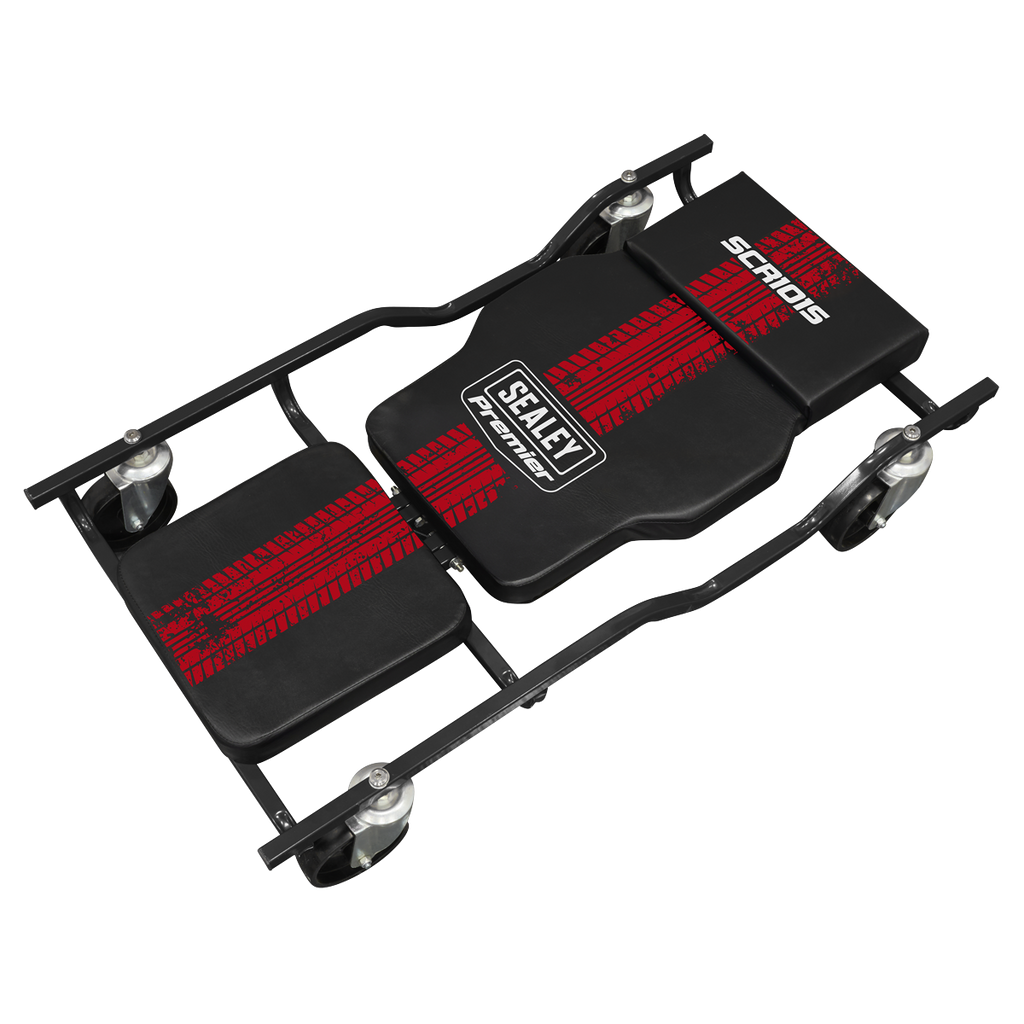Steel framework with powder coat paint finish. 5" Composite swivel castors making it easier to travel over rough surfaces. Comfortable vinyl covered deep foam filled back and headrest. Easily assembled, castors and hardware provided. Back/headrest rises and lowers for optimum comfort.