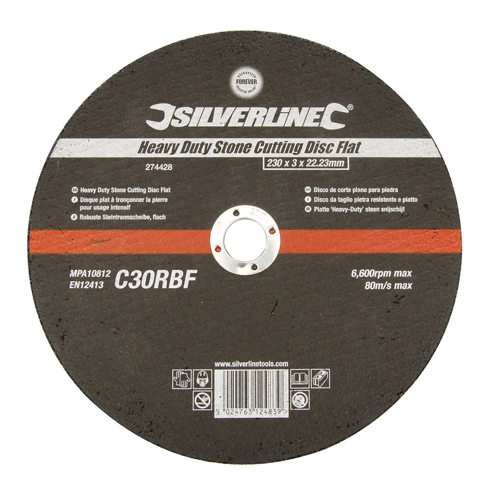 Premium quality fibreglass mesh reinforced silicon carbide cutting disc. Long life and fast, accurate cutting of stone, slab, tile, brick and block. Manufactured and certified to EN12413 with MPA approval. Suitable for all angle grinders. Expiry date stamped for safety.