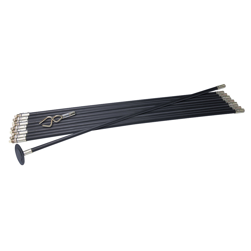 The Lock Rod Drain Rod System (patent pending) comprises robust, durable and flexible polypropylene rods with superior interlocking fittings. Double worm screw breaks up obstructions and the plunger creates pressure build-up, forcing obstructions clear. The rods can be rotated in either direction and will remain securely attached. Knurled screw connectors provide an enhanced grip and tool-free connection. Includes 10 x 920mm interlocking rods, 1 x 100mm rubber plunger, and 1 x 50mm double worm screw.