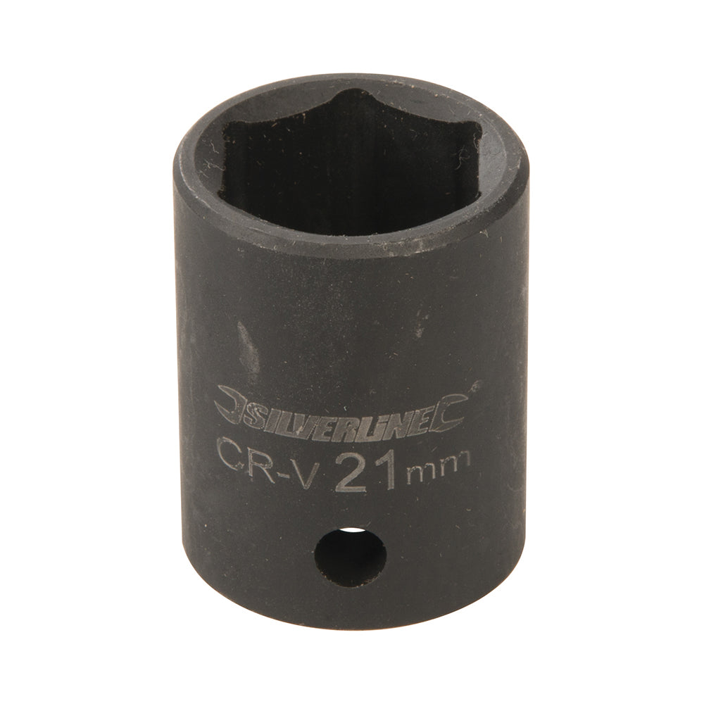 Impact 6-point hex sockets specifically forged for use on powered impact tools. Precision cold-forged, hardened and tempered chrome vanadium steel. Clear, laser-etched sizes and industrial phosphate-coated for tough corrosion resistance. Thick walls provide strength and durability for repetitive high torques. Side wall hole for ball or pin locking to the tool.