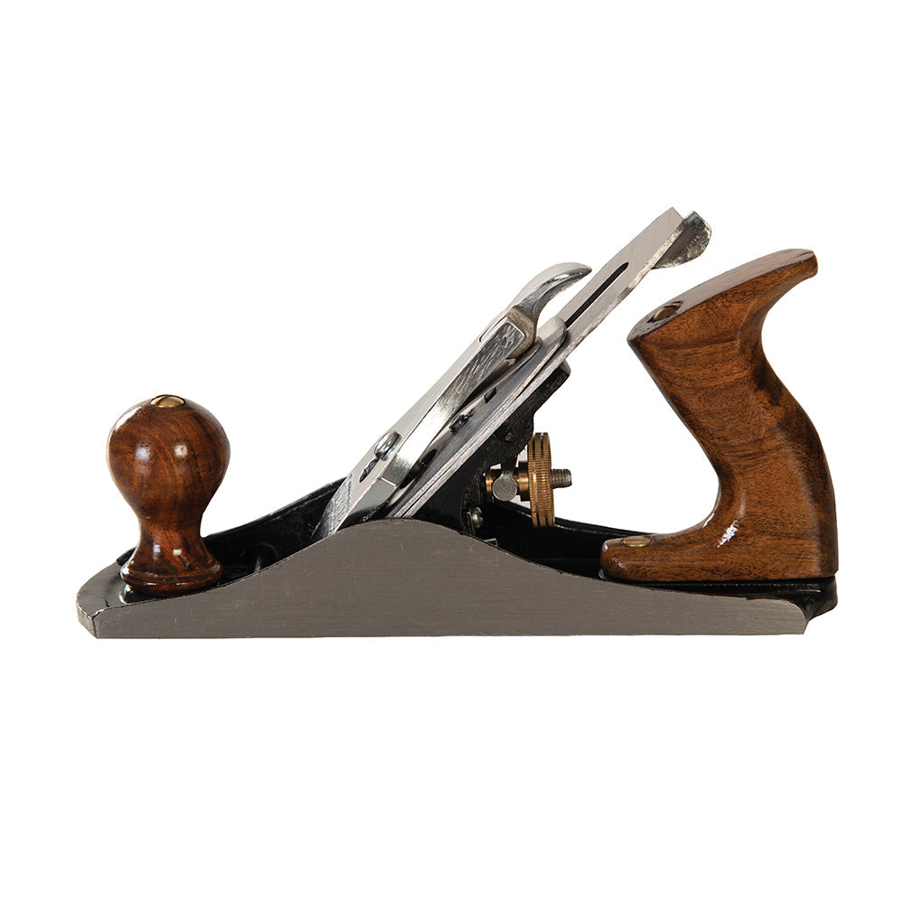 Cast-iron body for stability and attractive rosewood handles for user comfort, secured with 2 brass screws. Heavy duty high carbon steel 2mm blade. Milled sides and fluted base with brass adjustment screw. Simple, rapid adjustment mechanism with easy blade removal for sharpening and honing. Ideal for smoothing.