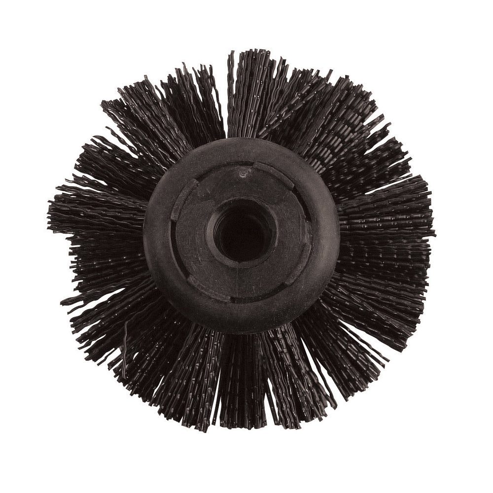Drain rod brush with stiff, coarse bristles. Attaches to drain rod for removing debris from drain walls of domestic drain pipes. Ideal for sweeping chimneys. Compatible with Silverline Drain Rod Sets and most third party drain rod sets. Brush diameter: 100mm. 16mm bore.