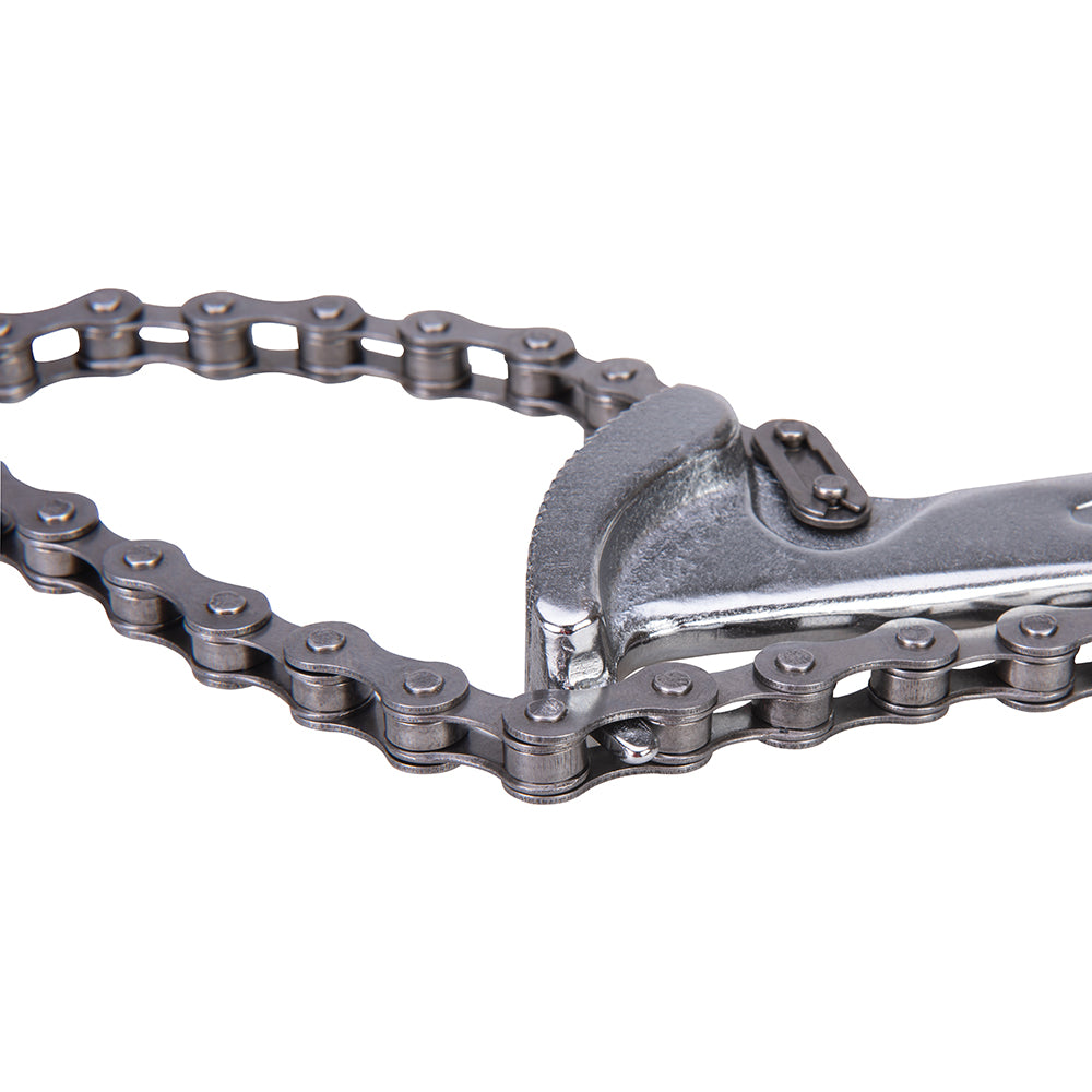 One-piece forged alloy tool steel handle and jaw. Features double-jaw design giving fast ratchet like action in either direction. Ideal for close-quarter work.