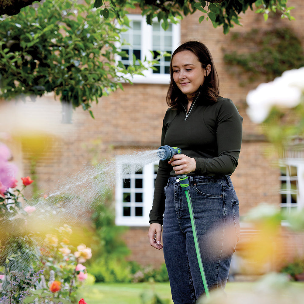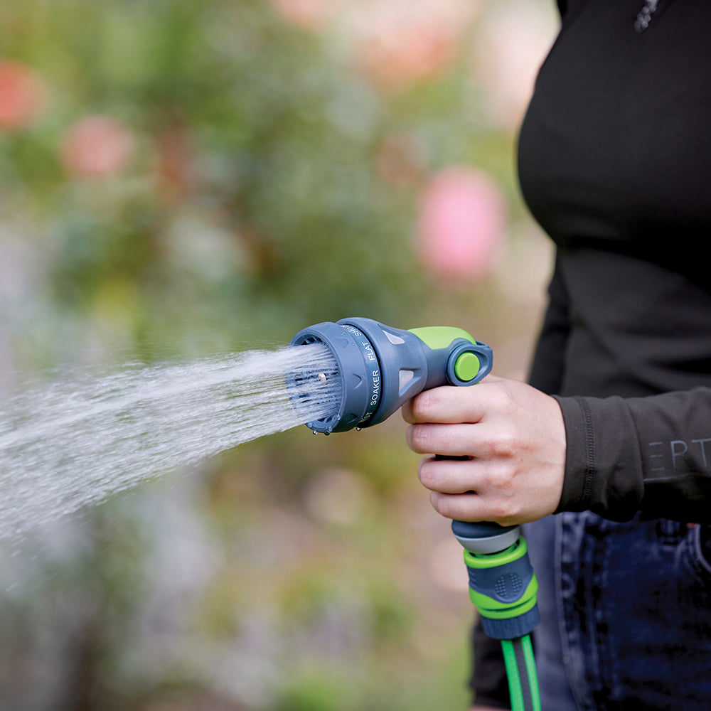 - 8-pattern spray gun with lock-on trigger for continual water flow