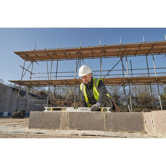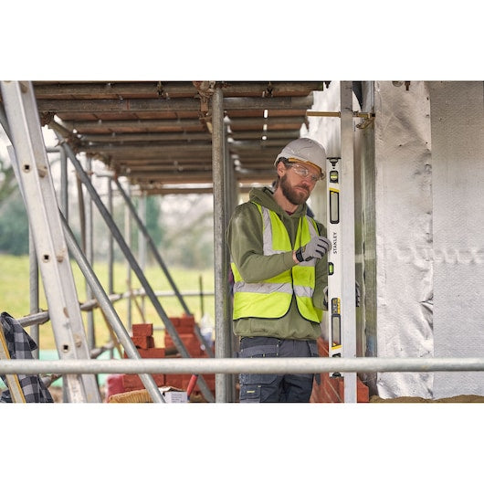 STANLEY FATMAX® XTREME™ box beam levels have been designed to provide durability and accuracy, providing you with the performance you need for every job. The patented continuous edge enables the ability to draw or scribe uninterrupted lines along the full length of the level. The fine milled primary edge provides 0.5mm/m accuracy, with a secondary edge accuracy of 0.8mm/m. The fully secured vial technology is designed to protect the vials against drop damage, while the 90% larger plumb vial provides an easier-to-see bubble for better visibility. The shock absorbing end caps are rubber moulded to protect the level from drop damage and feature raised anti-slip surface protectors to help protect against slipping and surface marking. Additionally, the end caps can be removed, making 90-degree markings and corner lines easier and more accurate. Strategically placed finger grab rails and wrap around handed grips are also incorporated for easier one handed use and better ergonomic design. Magnetic versions of the levels are available for specialised applications such as drywall construction and are equipped with stronger rare earth magnets than previous models