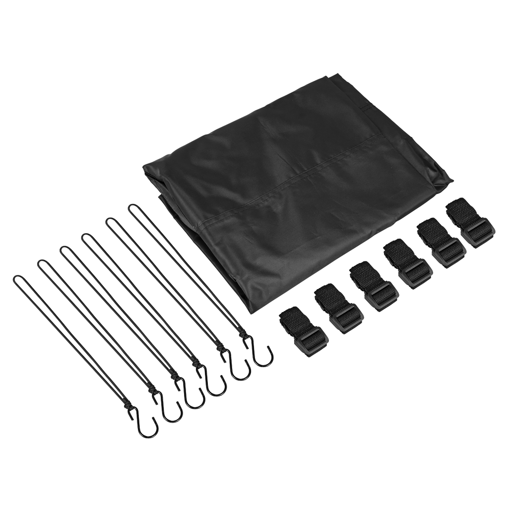 - STRONG & SECURE - Made from tough 210D/PU material with six fixing straps to hold it securely in place, even in strong winds.