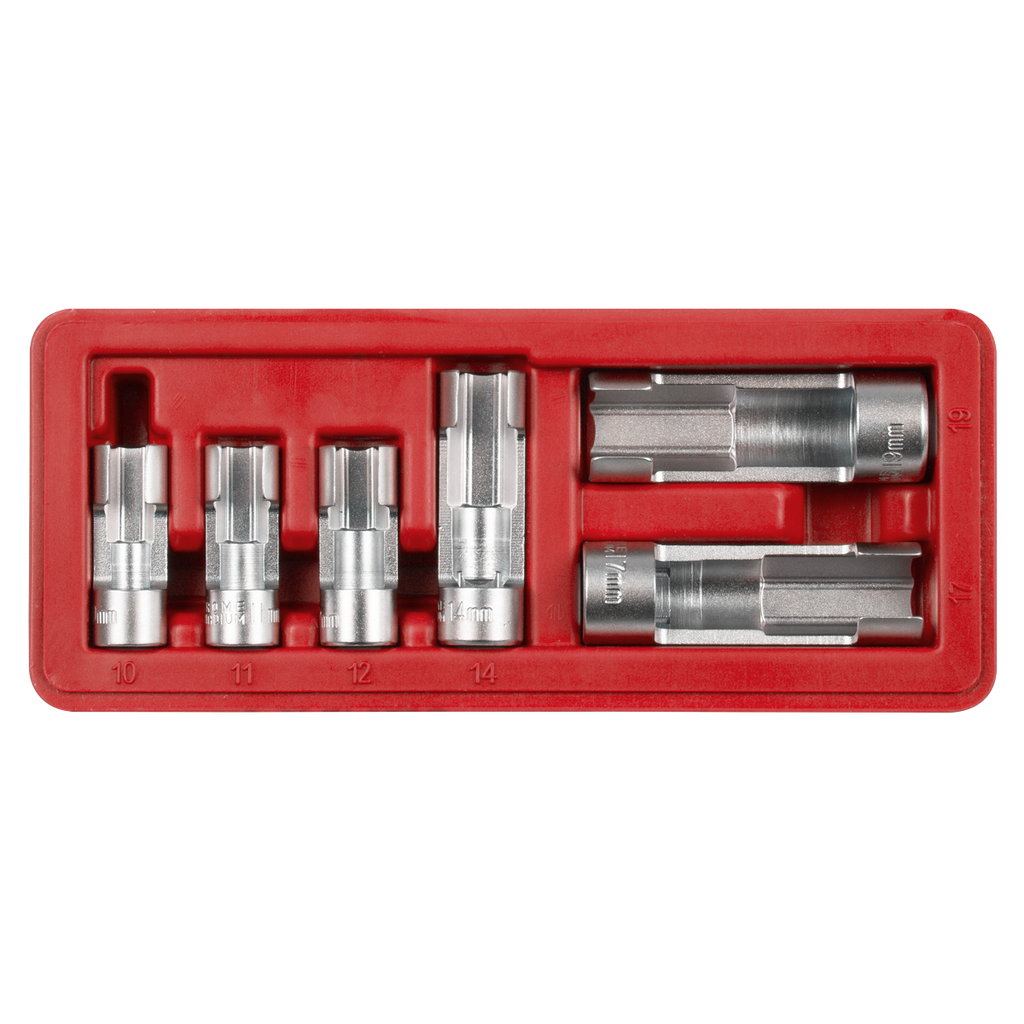 - 6PC SET- Contents: 3/8"Sq Drive; 10, 11, 12, 14mm, 1/2"Sq Drive; 17, 19mm.