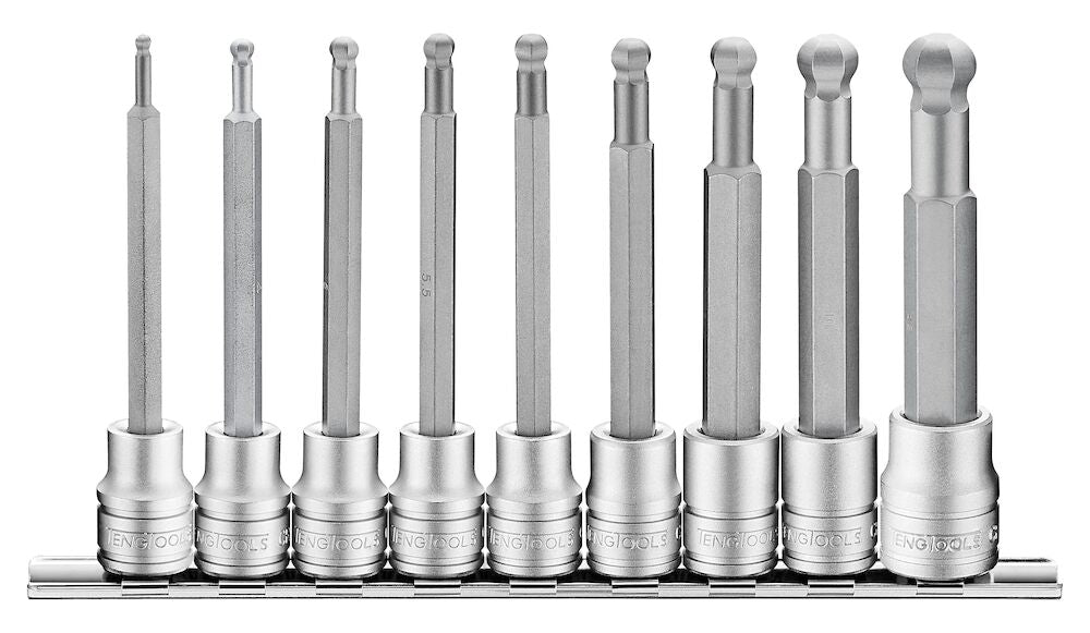 Teng Tools M3809HBN 3/8" ball point long hex bit socket clip rail set 9 pcs