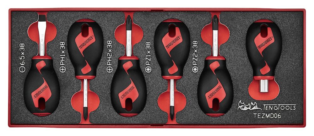 Teng Tools TEZMD06 Stubby Screwdriver Set FOAMX2 6 Pieces