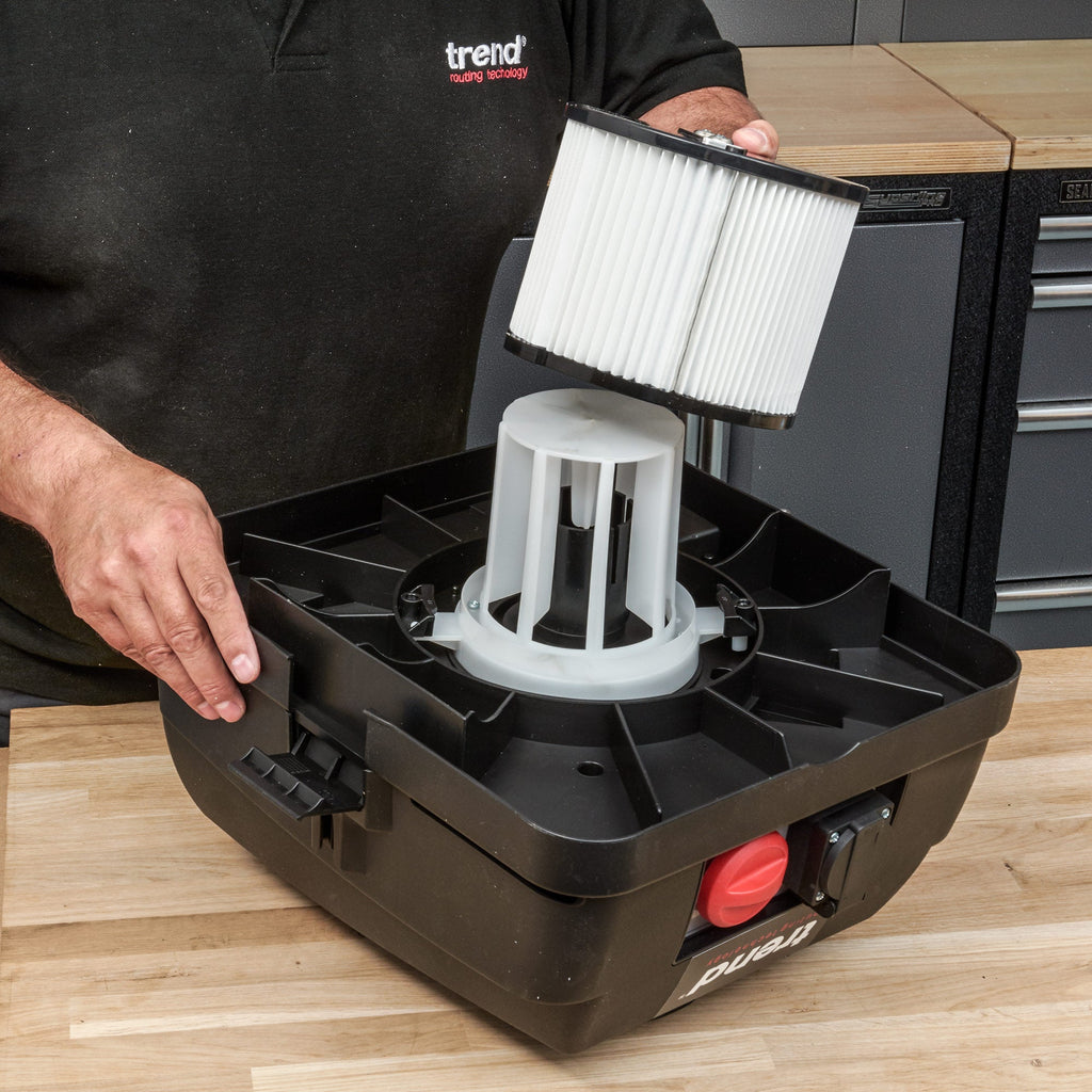 Auto-Start 1000W Power Tool Take-Off automatically turns the extractor on and off with the connected power tool to maximise safety, efficiency and ease of use. Features Automatic Filter Cleaning and 8 second run-on delay to clear any residual dust and debris from hoses, power tools and the HEPA filter cartridge to keep work areas safe and clean.