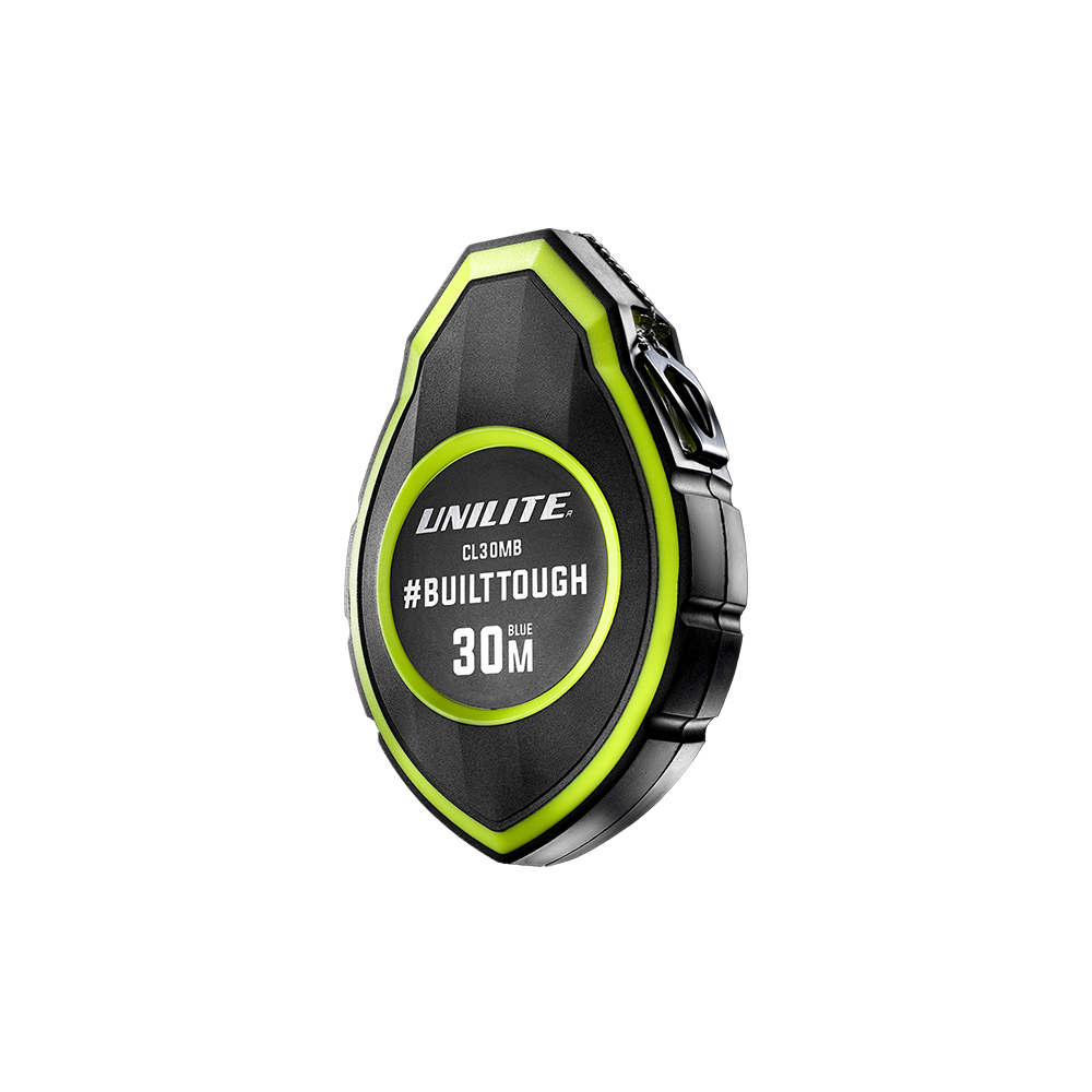 The CL30MB Chalk Line is a compact and lightweight tool designed for precision marking, offering 30 meters (100 feet) of twisted 1mm polyester cord with a 20kg break resistance. Featuring a 6:1 geared ratio for rapid rewind, this chalk line ensures quick and efficient use. The fold-out rotating crank handle provides easy winding, while the black carbon steel end hook with a finger pull hole allows for secure attachment. The durable, impact-resistant casing made from TPR-covered ABS ensures lasting durability, drop tested from 1 meter. With an easy-to-open sliding door, refilling chalk is simple, and it holds up to 100g of powder. It includes a 120g bottle of blue chalk and a line spirit level, making it a complete solution for any marking task.