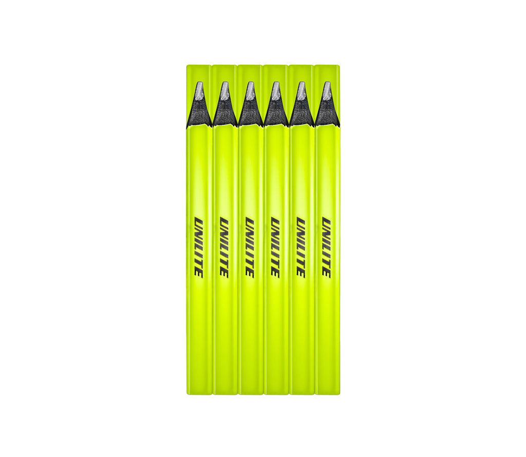 Made from black stained natural base wood. 100% FSC Certified. Features anti-roll octagonal barrel shape and neon yellow color coating for visibility. Quick and easy to sharpen. Medium HB lead for easy marking on timber, brick, stone, concrete, and other building materials. Pencil dimensions: 176.5 x 15 x 7mm. Lead size: 2.15 x 5.25mm. Ideal for trade and DIY use.