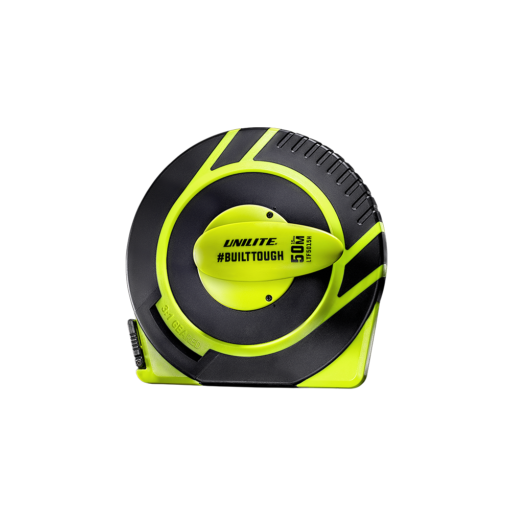 The LTF5015H is equipped with a superior internal mechanism, ensuring smooth tape extension and retraction. It has a 3:1 geared ratio for fast rewind, minimizing downtime on the job. Additionally, the fold-out rotating crank handle on the back allows for quick and efficient winding, while the easy finger pull ring and fold-out steel ground spike provide stability when measuring. This tool is ideal for professionals needing reliable and accurate measurements in rugged conditions.