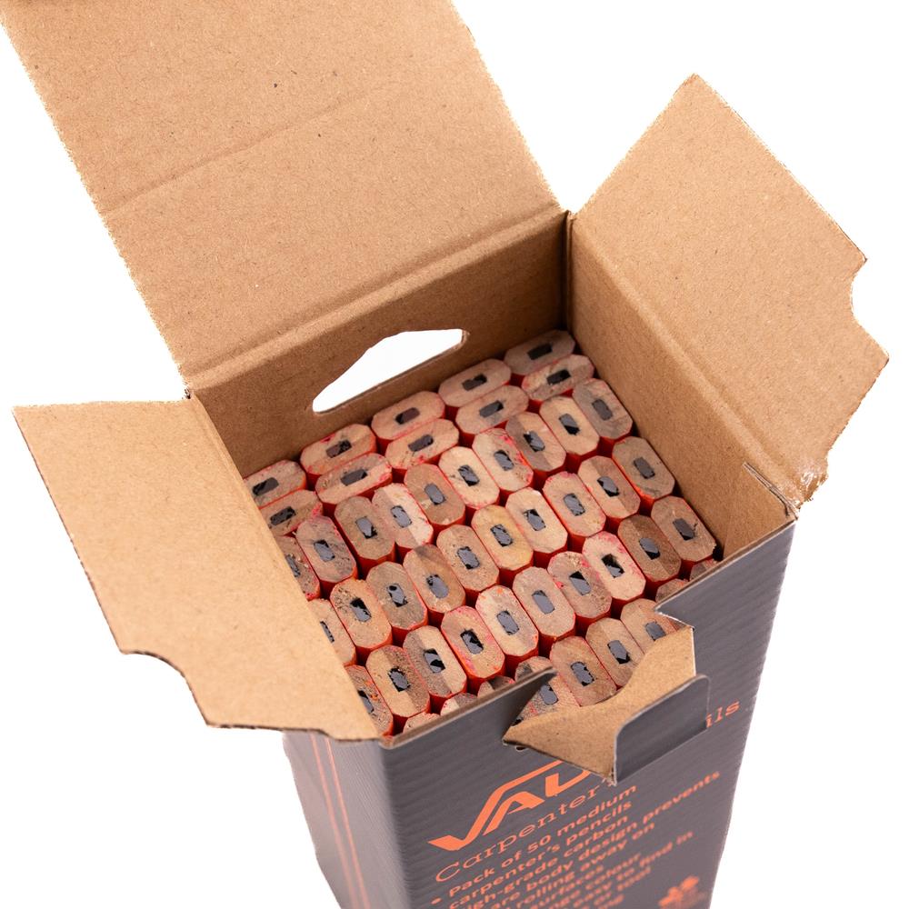 The Vaunt medium carpenters pencils are supplied in a pack of 50 and are ideal for everyday marking tasks. Their bright orange colour makes them easy to locate in your tool bag or on site.